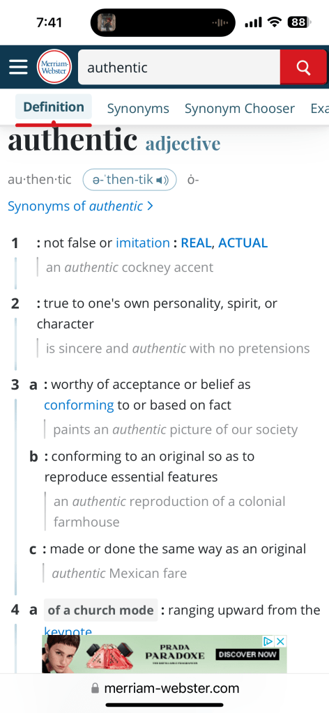 In this context though, cracks started to show. Words like DNA, values and essence set the table for words like authentic or authenticity for the extrapolation of words like pure or genuine. While words like belief of conforming to swirl in the actual definition. Perception is reality, what’s real and what’s not?